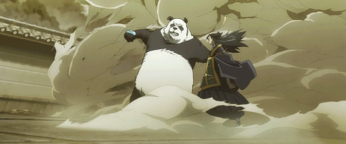 머리 질질 기른 스님이 고릴라로 변한 이족보행 판다와 맨손격투를 하는 장면이라니